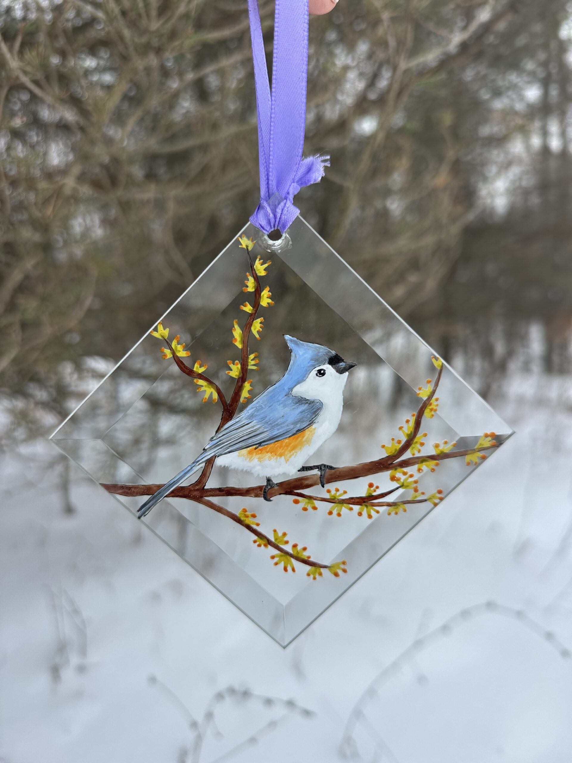 Hand-Painted Tufted Titmouse Suncatcher – Unique Glass Art for Bird Lovers & Nature Decor – Window Decoration Gift