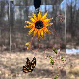 When I see tulips popping up out of the ground, I know for sure that winter is ending! Leaves growing, buds blooming, and animals emerging from their winter slumber when spring comes around! When I think of spring, tulips always come to mind with how vibrant their colors can be and how gorgeous they are! I painted this Orange Tulip Suncatcher so that you can be reminded of spring’s vibrant colors as well!